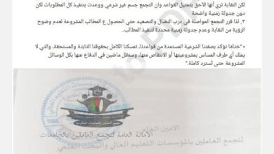 تعميم وتوضيح لكل الزملاء بالجامعات ( موظفين عمال تقنيين فنيين حرس) .. انطلاقًا من حرصنا الكامل على سلمية التحرك.. وسعيًا…