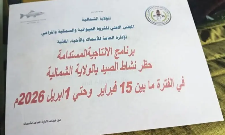 حظرت الولاية الشمالية نشاط صيد الأسماك في جميع أنحاء الولاية لمدة 45 يوماً وذلك بجميع أنحاء الولاية خلال الفترة من…