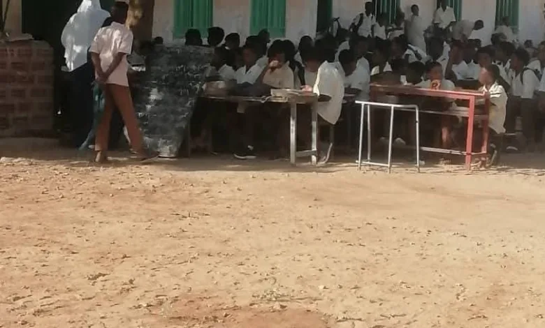 طلاب يدرسون تحت ظلال الأشجار بمدرسة البروفسير عبد الله الطيب بالدامر