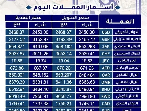 اسعار صرف العملات الاجنبية مقابل الجنيه السوداني