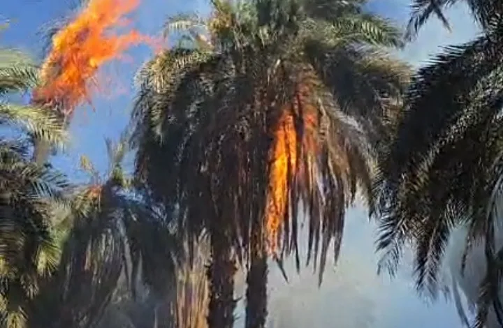 حريق يلتهم أشجار النخيل والمغروسات وعدداً من المزارع في البركل