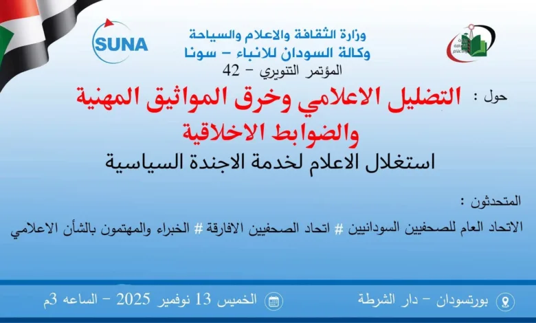 تنظم وكالة السودان للأنباء عصر اليوم الخميس تنويراً إعلامياً تحت عنوان التضليل الإعلامي وخرق المواثيق المهنية والضوابط الاخلاقية وإستغلال الإعلام…