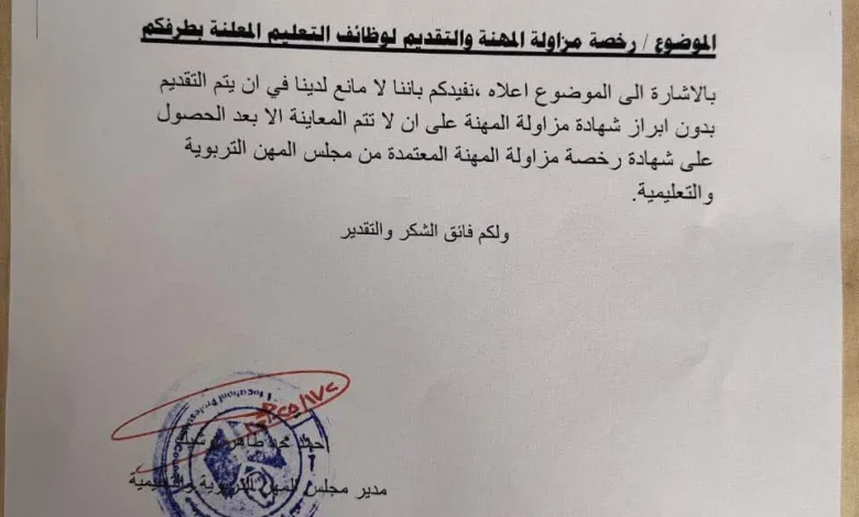 مجلس المهن التربوية يوجه بالسماح لخريجي التربية بالتقديم للوظائف دون رخصة مزاولة المهنة