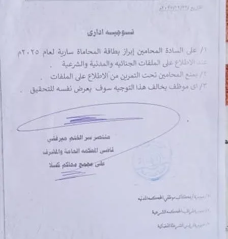 طالب الجهاز القضائي بولاية كسلا جميع المحاميين العاملين في المهنة بضرورة إبراز بطاقة المحاميين سارية المفعول للشرطة أو النيابة عند…