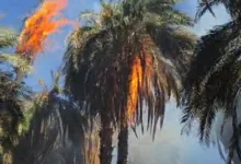 حريق يلتهم أشجار النخيل والمغروسات وعدداً من المزارع في البركل