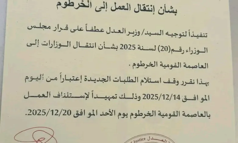 أوقف المسجل التجاري العام إستلام الطلبات الجديده في بورتسودان إبتداء من اليوم الأحد وذلك تمهيداً لاستئناف العمل بالعاصمة…