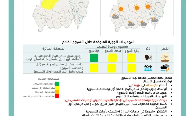 توقعت الهيئة العامة للأرصاد الجوية إرتفاعاً كبيراً في درجات الحرارة خلال هذا الأسبوع قد تتسبب في حدوث الإجهاد وضربات الشمس…