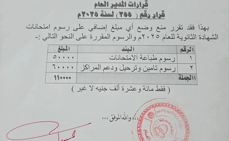 “110” الف جنيه رسوم إمتحانات الشهادة الثانوية
