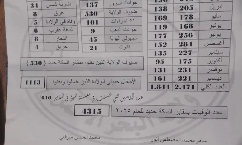 (4315) عدد الوفيات بمقابر السكة الحديد ببورتسودان خلال العام 2025م