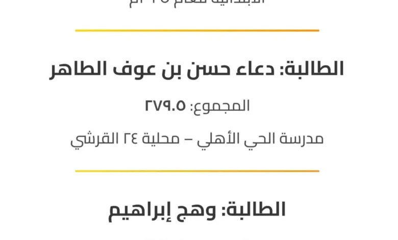 طالبتان تتقاسمان المركز الأول في الشهادة الابتدائية بولاية الجزيرة