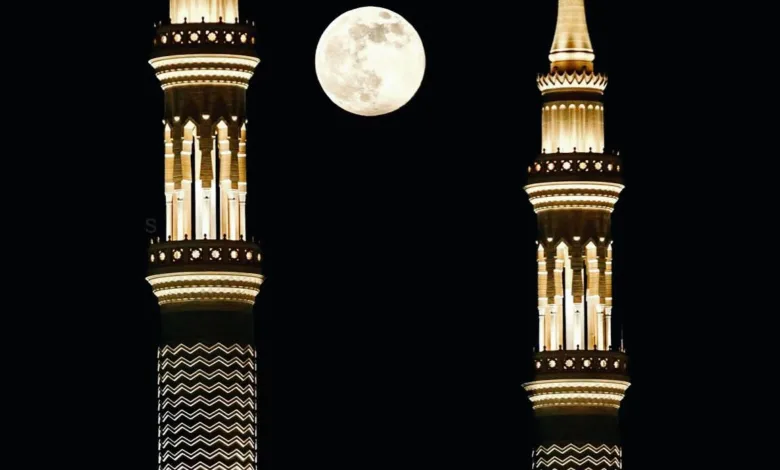 مآذن المسجد النبوي الشريف تزدان بنور القمر،