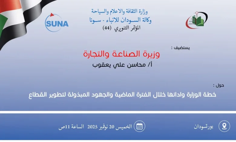 يستضيف المؤتمر التنويري رقم 44 لوزارة الثقافة والإعلام والسياحة الذي تنظمه وكالة السودان للأنباء في الحادية عشرة من صباح اليوم…