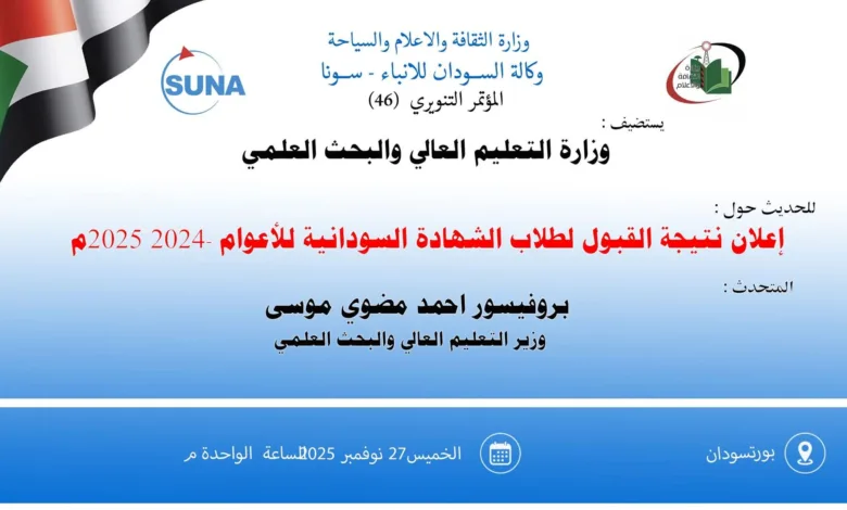 مؤتمر صحفي لإعلان نتيجة القبول للجامعات السودانية