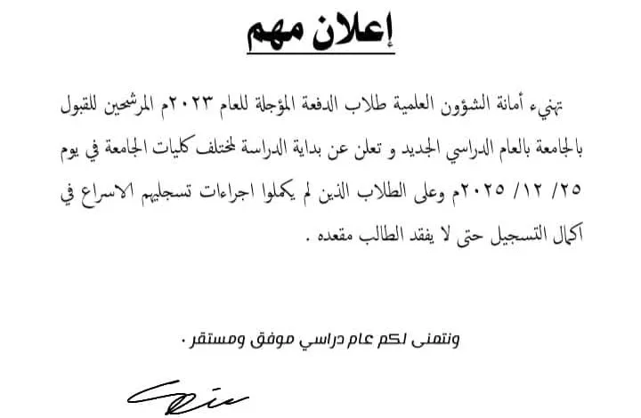 جامعة المغتربين : 25 ديسمبر موعداً لبداية العام الدراسي في جميع الكليات للدفعة المؤجلة (2023- 2024م )
