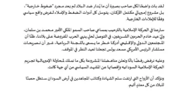 الحركة الإسلامية تحذّر من بيان مزور باسمها حول مبادرة ولي العهد السعودي