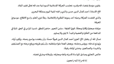 بقلوبٍ مؤمنةٍ بقضاء الله وقدره، تحتسب الحركة الإسلامية السودانية عند الله تعالى فقيد البلاد الأخ الأستاذ/ أحمد كمال الدين…