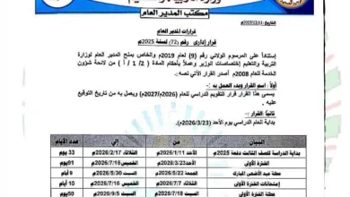 التربية والتعليم بالشمالية : 23 مارس المقبل بداية العام الدراسي الجديد 2026م