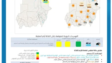 أصدرت الهيئة العامة للأرصاد الجوية السودانية نشرة تتضمن أحوال الطقس خلال الأيام المقبلة وذلك علي النحو التالي : 🕘الاحد 07…