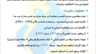 دواجن النيل تعلن عن حوجتها لمحاسب تكاليف