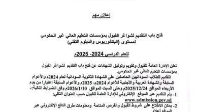فتح باب التقديم لشواغر القبول العام للجامعات الحكومية بكالوريوس ودبلوم للعامين (2023–2024) و (2024–2025) م