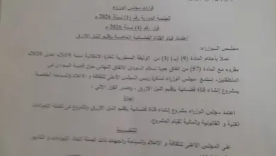 اعتمد مجلس وزراء حكومة إقليم النيل الأزرق الذي انعقد فى جلسته الدورية رقم (1) لسنة 2026م القرار رقم (4) في…
