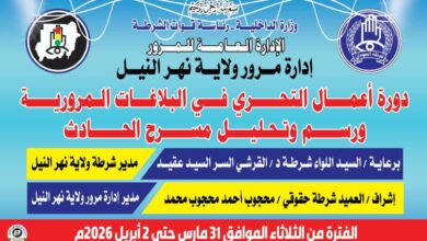 إنطلاقة دورة أعمال التحري في البلاغات المرورية ورسم وتحليل مسرح الحادث بنهر النيل